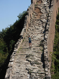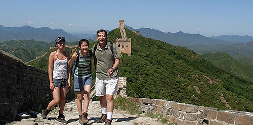 I hiked this section of the Great Wall just 4 months ago. No doubt it is the most challenging and enjoyable part of the Great Wall near Beijing. The views are spectacular, the breezes are soothing, the stairs are punishing, and the walls hide the thousand-year old secrets. This time, I hiked with two youngsters: my daughters. I wondered, the night before, if my regular 2-mile jogs can match their lightness and youthful regenerative speed. An old man will go distance spending a days with his daughters. I am the one with experience and wisdom. Right? Alright, experience.